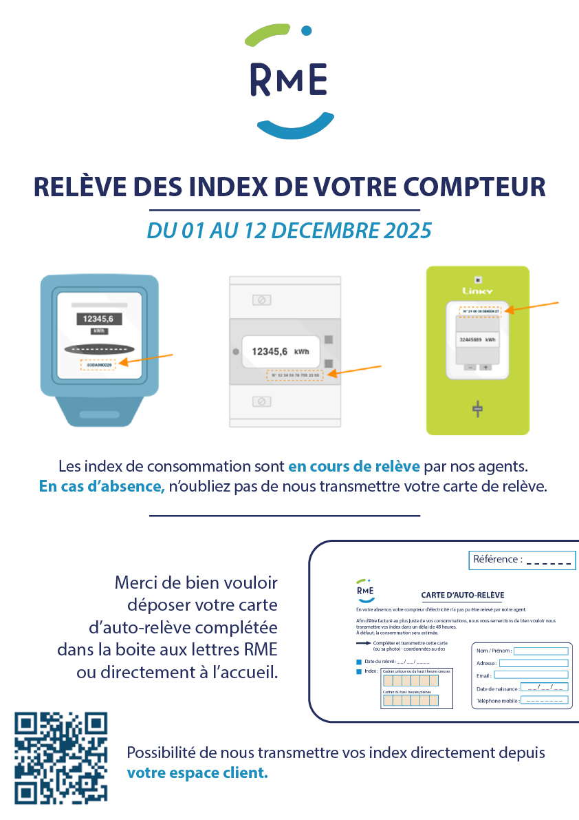 Relève de votre compteur entre le 1ᵉʳ et le 12 décembre 2025 – Plus d’infos sur le site internet.